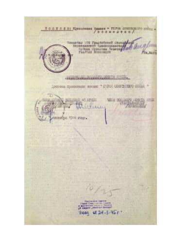 Наградной лист на Героя Советского Союза (посмертно) гвардии старшего сержанта Адаменко Ивана Диомидовича от 27 октября 1944 г.