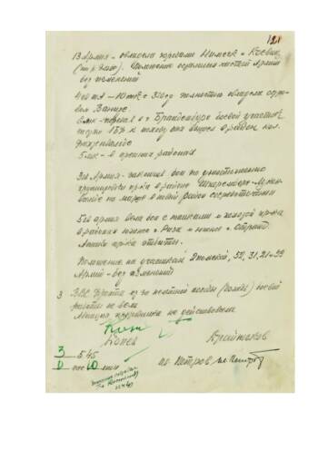Боевое донесение 1-го Украинского фронта от 3 мая 1945 г. № 00145 И.В. Сталину об овладении г. Берлин. Рукописный текст