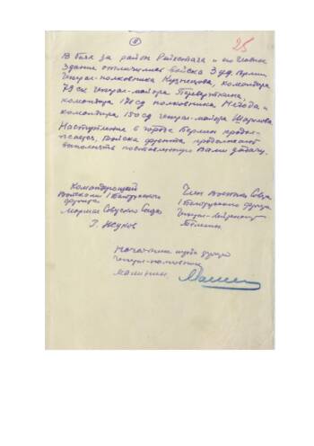 Боевое донесение командующего 1-го Белорусского фронта от 30 апреля 1945 г. № 00655/оп о взятии здания Рейхстага. Рукописный текст