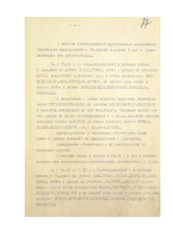 Частная оперативная директива штаба 1-го Белорусского фронта № 00541/оп от 12 апреля 1945 г. командующим войсками 5-й ударной армии, 8-й гвардейской армии, 1-й и 22-й гвардейских танковых армий на наступление. Подлинник. Машинописный текст
