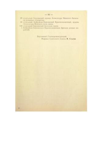 Приказ ВГК № 0111 11 июня 1945 г. о присвоении наименования «Берлинских» частям 1-го Белорусского фронта. Машинописный текст