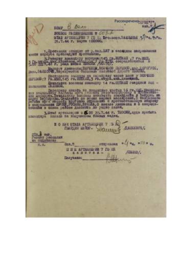 Боевые приказы, боевые распоряжения 7 гвардейского кавалерийского корпуса за июль-август 1944 г. Оборона противника западного берега реки Западный Буг
