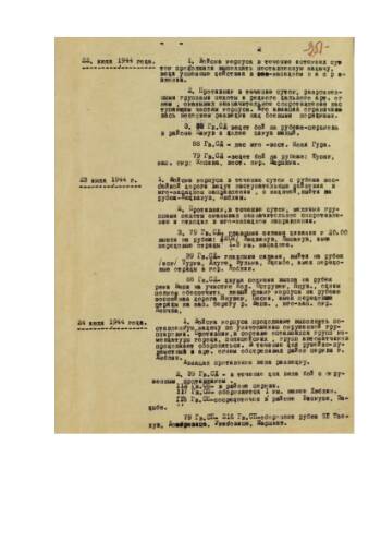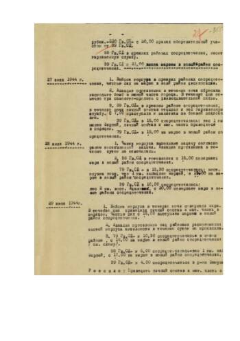 Журнал боевых действий 28 гвардейского стрелкового корпуса за июль 1944 г. (с приложением карты)