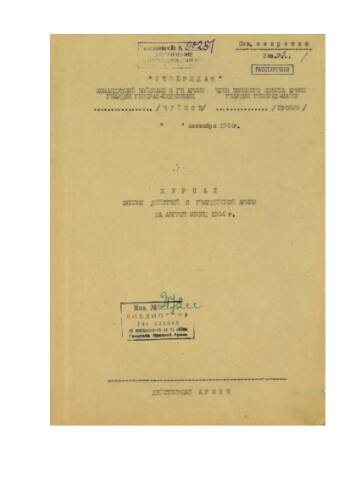 Журнал боевых действий 8 гвардейской Армии за август 1944 г.Журнал боевых действий 8 гвардейской Армии за август 1944 г.1 / 6 Содержание документа Скачать PDF