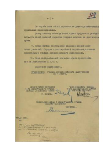 Оперативная директива штаба 1-го Белорусского фронта от 2 февраля 1945 г. № 001/оп командующему 61-й армией на подготовку наступательной операции.