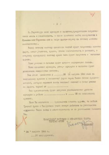 Ультиматум командующего 3-м Украинским фронтом командирам окруженных в районе Аккермана и Кишинева соединений противника от 24 августа 1944 г.