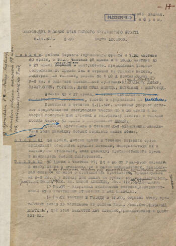 Оперативные сводки штаба 1-го Украинского фронта за период с 4 по 6 ноября 1943 г.