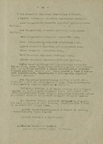 Приказ Верховного Главнокомандующего с поздравлениями войск 1-го Украинского фронта в связи с освобождением г. Киева и присвоении почетных наименований «Киевские»