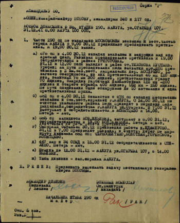 Боевые приказы и донесения штабов соединений 50 армии с18 по 30 декабря 1941 г.