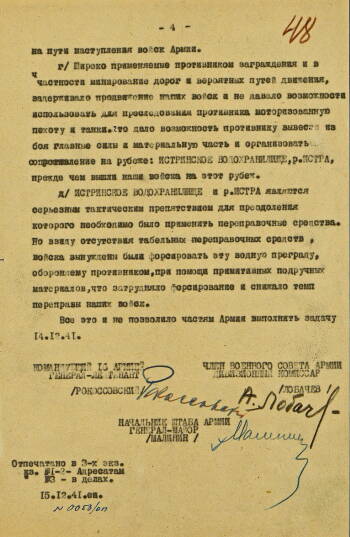Доклад командующему войсками Западного фронта генералу армии Жукову командующего войсками 16 армии генерал-лейтенанта Рокоссовского о боевых действиях по преследованию отходящего противника от 15 декабря 1941 г.