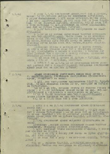 Из журнала боевых действий войск 43 армии за период с 1 по 9 января 1942 г.