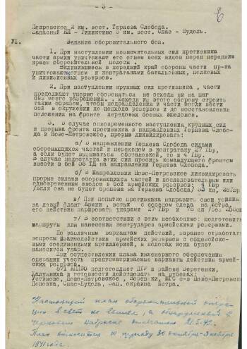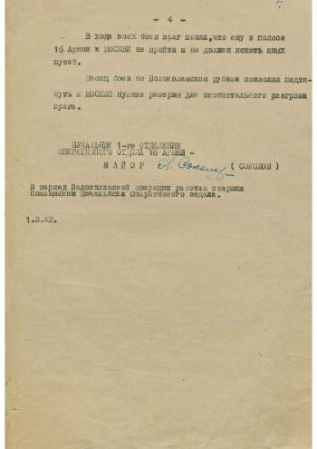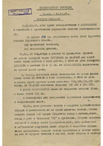 Краткое описание и план оборонительных действий войск 16 армии в Волоколамской оборонительной операции от 1 марта 1942 г.