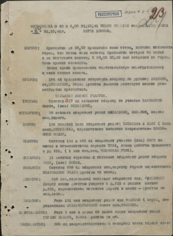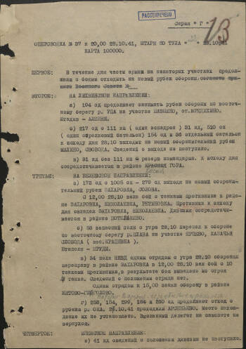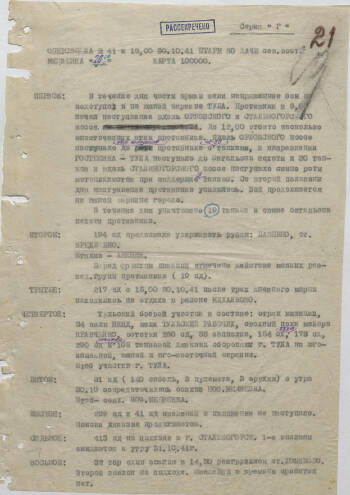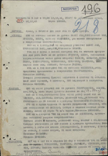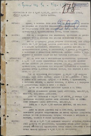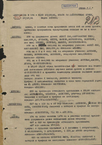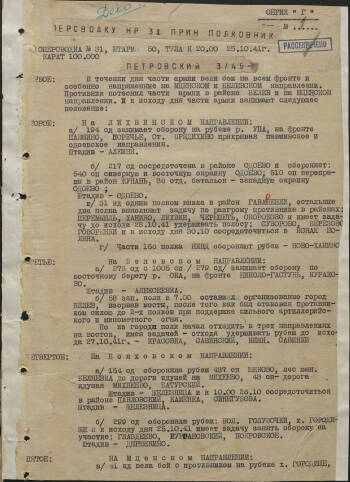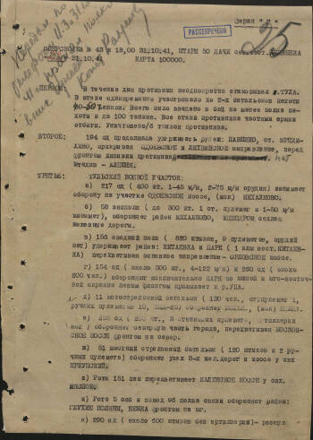 Оперативные сводки штаба и штабов соединений 50 армии с 25 октября по 31 декабря 1941 г.