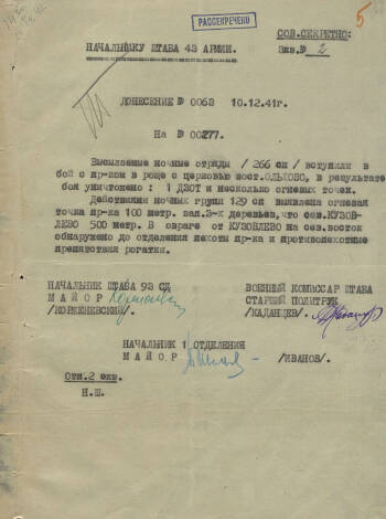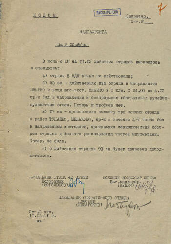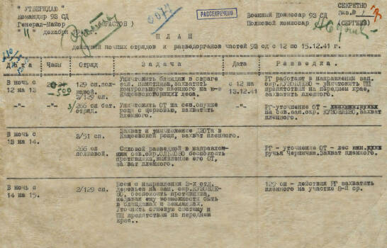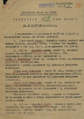 Планы боевых действий отрядов соединений и частей 43 армии в ночное время в декабре 1941 г.