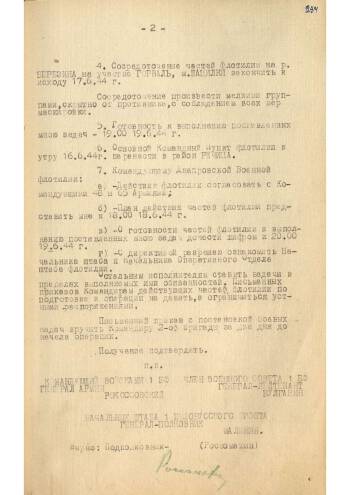 Private Operational Directive No. 00477 / op dated June 12, 1944 (23.30) of the headquarters of the 1st Belorussian Front to the commander of the Dnieper Military Flotilla on supporting the actions of front troops in the direction of Bobruisk. The front command outlines the tasks for the actions of the Dnieper flotilla, the directive will be especially interesting for researchers of the flotilla during the Great Patriotic War, it describes in detail the nature of the interactions of the crew with the ground units of the Red Army. Of particular interest is the very detailed planning of operations at the level of the army command, even separate sections of the front and the actions of the flotilla that should be undertaken on them are prescribed.