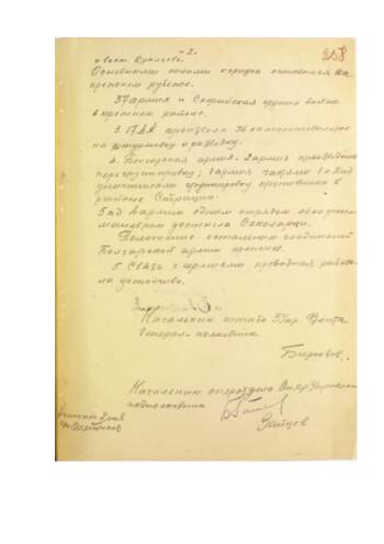 Боевое донесение начальника оперотдела 3 Украинского фронта от 25 октября 1944 года № 00898 со сведениями об участии болгарских формирований. Подлинник. Рукописный текст. ЦАМО. Ф. 243. Оп. 2900. Д. 765. Л. 180-214.