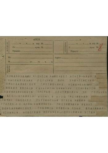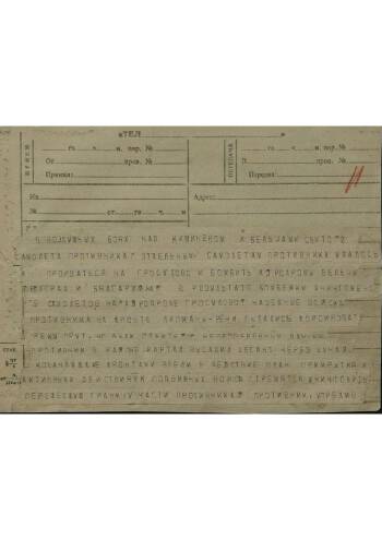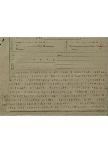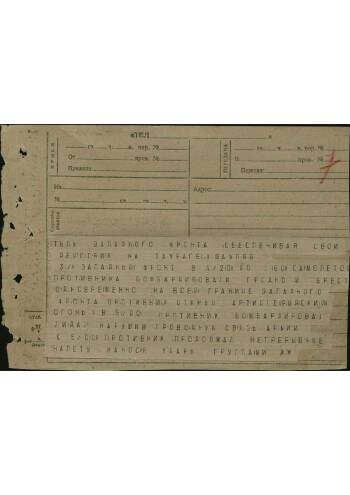 The operational report of the General Staff of the Red Army on 06/22/1941. The report describes the situation at the fronts by 10-00 in the morning, signed by the Chief of the General Staff of the Red Army, Army General G.K. Zhukov. The summary indicates the directions of the enemy’s main attacks, lists the cities, transport hubs, and places of concentration of our troops bombed. Air battles are noted, including in which the enemy suffered losses in airplanes. Of particular interest are the data on the capture of an enemy soldier in the very first hours of the war.
