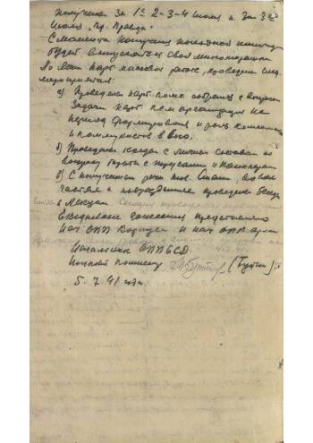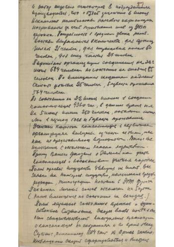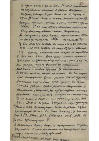 Political report of the Political Department of the 6th Rifle Division No. 0369 dated 07/05/1941 The report describes the treacherous attack of the enemy on June 22, 1941, as well as the losses that the division incurs - up to 2/3 of the personnel and up to 90% of the material part. Then, the combat operations of the surviving divisions of the division are described, which were assembled in combined detachments and with the available forces and means, with fights retreated to the east. Of particular interest are the described cases of heroism and stamina of the soldiers and commanders of the division, as well as the high morale of the surviving soldiers. The report completes the report on the activities carried out by the political department of the division to maintain a high morale.