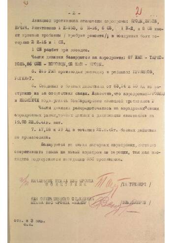 Оперативная сводка №01 штаба ВВС Юго-Западного фронта