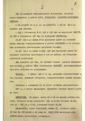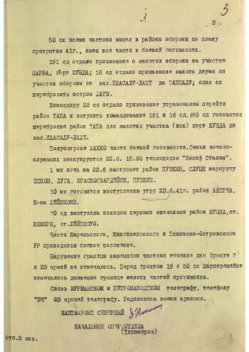 Оперативная сводка штаба Северного фронта № 1 от 22 июня 1941 года на 22 часа 00 минут.
