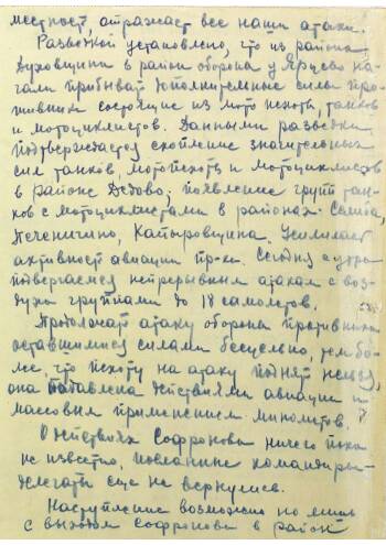 Докладная записка генерал-майора Рокоссовского Главнокомандующему Западным фронтом на 13-00 20 июля 1941 г. о боевых действиях 101-й стрелковой дивизии, сломе сопротивления противника, обороняющегося у Ярцево, поступлении дополнительных сил противника из района Духовщины в район обороны Ярцево.