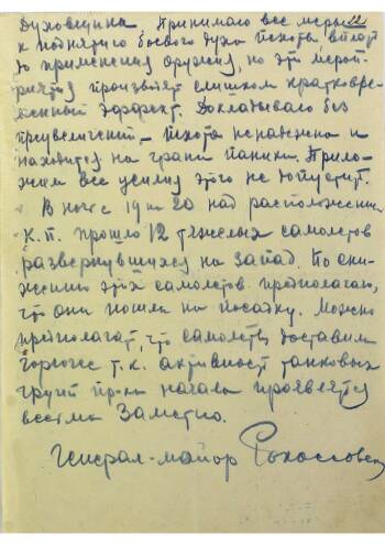 Докладная записка генерал-майора Рокоссовского Главнокомандующему Западным фронтом на 13-00 20 июля 1941 г.
