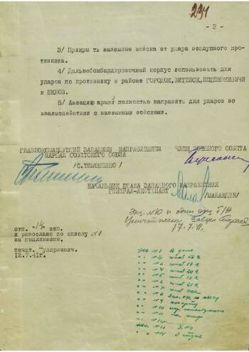 Приказ войскам Западного направления от 12 июля 1941 г. № 060 о задачах фронта совместными действиями 22-й, 19-й и 20-й армий уничтожить прорвавшегося противника на Витебском и Могилевском направлениях и 21-й армии перейти в наступление на Бобруйском направлении.