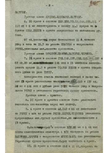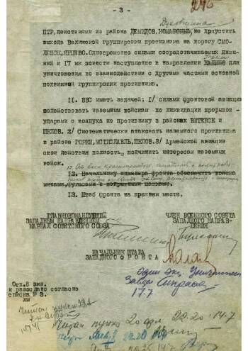 Приказ войскам Западного направления от 14 июля 1941 г. № 065 о задачах войск фронта в связи с прорывом фронта противником в районе Шклов и Быхов и выходом в район Велиж и Горки, стремясь окружить нашу Витебско-Оршанскую группировку.