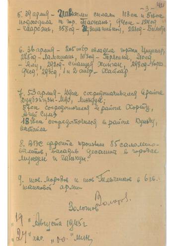 БОЕВОЕ ДОНЕСЕНИЕ НАЧАЛЬНИКА ШТАБА ЗАБАЙКАЛЬСКОГО ФРОНТА ГЕНЕРАЛА АРМИИ М.В. ЗАХАРОВА (УСЛОВНАЯ ФАМИЛИЯ – ЗОЛОТОВ) ОТ 20 АВГУСТА 1945 ГОДА № 0011 О ВЫСАДКЕ ДЕСАНТА В МУКДЕНЕ И ЧАНЧУНЬ И БОЕВЫХ ДЕЙСТВИЯХ ФРОНТА 20 августа 1945 г.