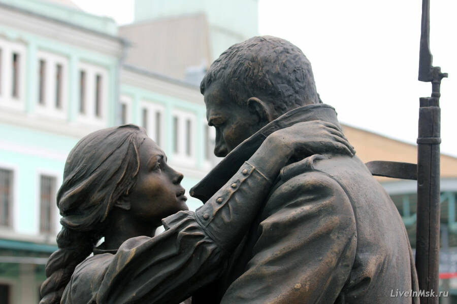 Композиция была установлена между зданием Белорусского вокзала и железнодорожными путями. Место для установки памятника было выбрано неслучайно, ведь именно с этого вокзала уходили поезда с солдатами на западные фронта во времена Первой мировой войны и Великой Отечественной войны.