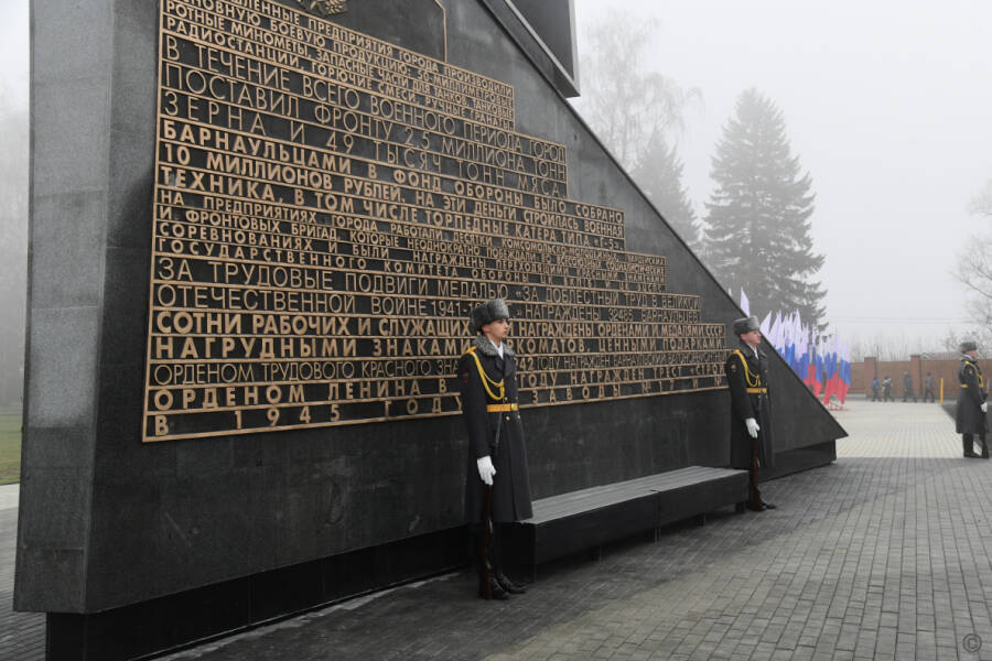 4 ноября 2022 года, в День народного единства, в Барнауле открыта стела «Город трудовой доблести».