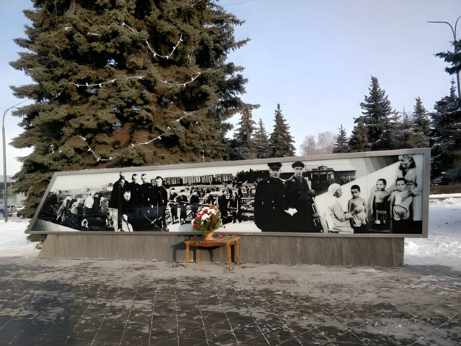 Памятник украсил площадь перед железнодорожным вокзалом Ульяновск-Центральный. Высота стелы – около 12 метров, рядом расположены информационные стенды, выполненные в технике графического коллажа. Изображения на стендах посвящены жителям Ульяновска, благодаря которым стране удалось победить в Великой Отечественной войне.