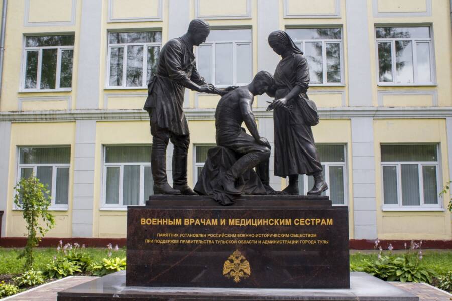 Этот памятник стал одним из первых в стране, посвященных военным медикам. Инициатором установки выступило Российское Военно-Историческое общество, которое возглавляет Владимир Ростиславович Мединский.