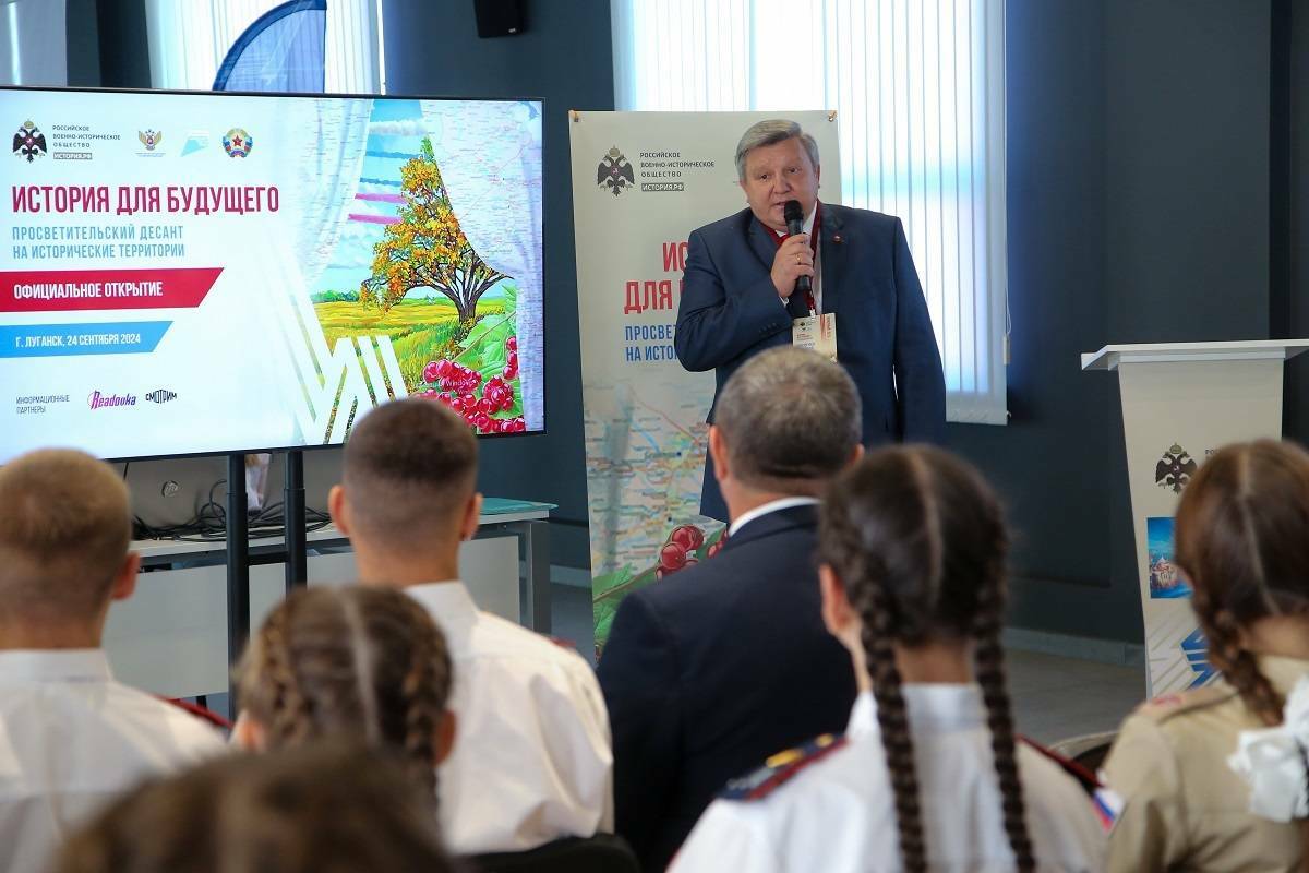 - Просветительский десант Российского военно-исторического общества приехал на исторические территории с целью сохранения памяти. Мы рассказывали и о единых учебниках истории под редакцией Владимира Мединского, и о мемориалах, которые Российское военно-историческое общество восстанавливало вместе с луганчанами. Если не будет исторической памяти, если мы не будем заботиться о памяти наших предков, то перестанем существовать как народ.
