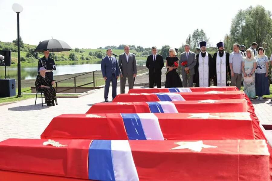 Траурные церемонии перезахоронения останков советских солдат прошли в Ростовской и Тульской областях 22 июня, в День памяти и скорби.