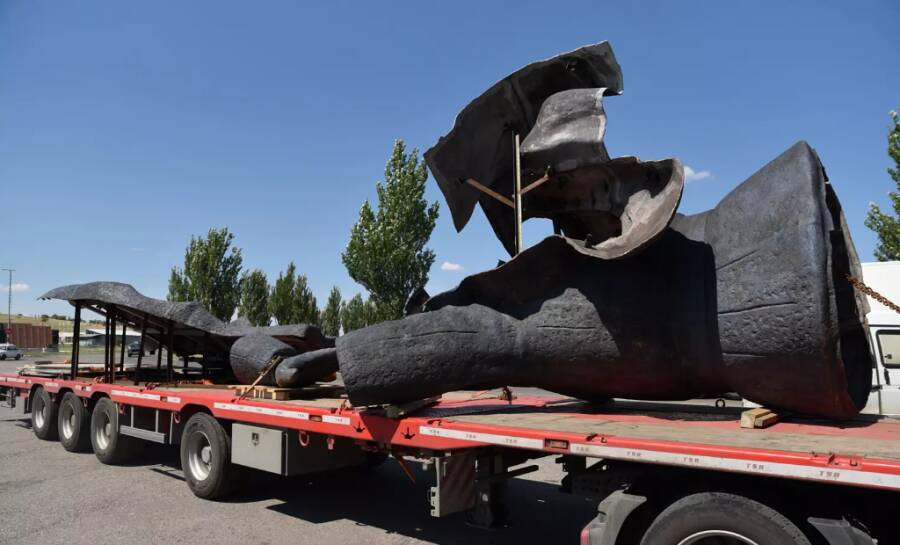 «Сегодня на мемориальный комплекс Саур-Могила близ Донецка доставили девятиметровую фигуру Солдата Победы - один ключевых элементов мемориала. Специалисты уже приступили к ее техническому монтажу. В ближайшее время воссозданная скульптура вернется на свое историческое место - к подножию стелы на вершине кургана», - рассказали в РВИО.