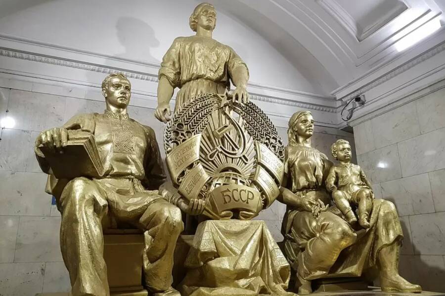 В московском метро на станции метро “Белорусская” установили скульптуру “Советская Белоруссия”, которая более 20 лет считалась утраченной, и не так давно была обнаружена в московском электродепо.