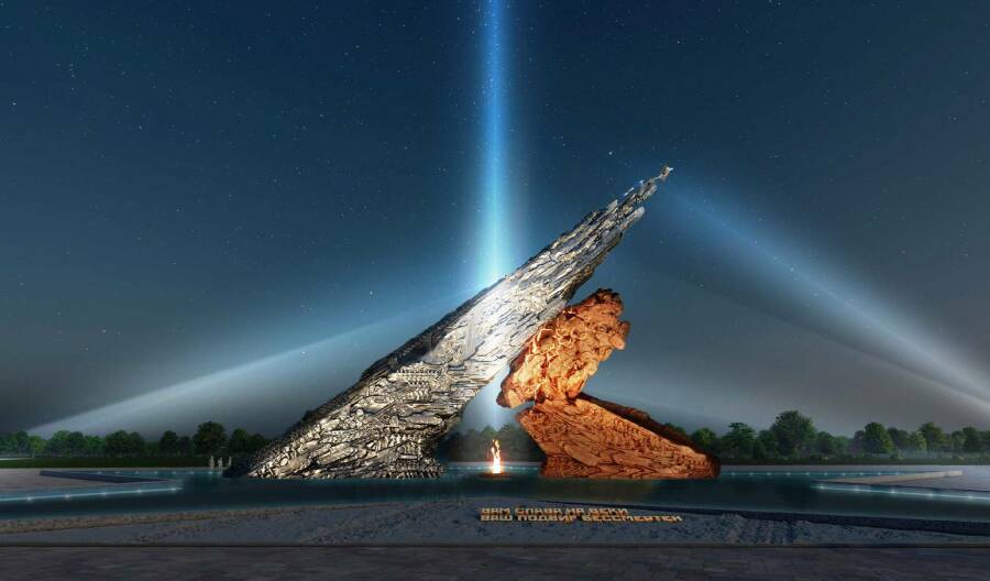 Авторский коллектив доработал нереализованный проект скульптора Евгения Вучетича. Памятник задуман в виде двух клиньев, которые символизируют столкновение советской и германской армий.