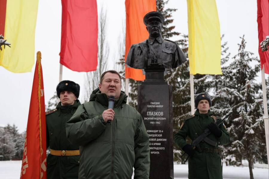 Открытие Памятника-бюста генерал-майору Василию Андреевичу Глазкову стало одним из важнейших событий празднования 80-летия Победы в Сталинградской битвы.