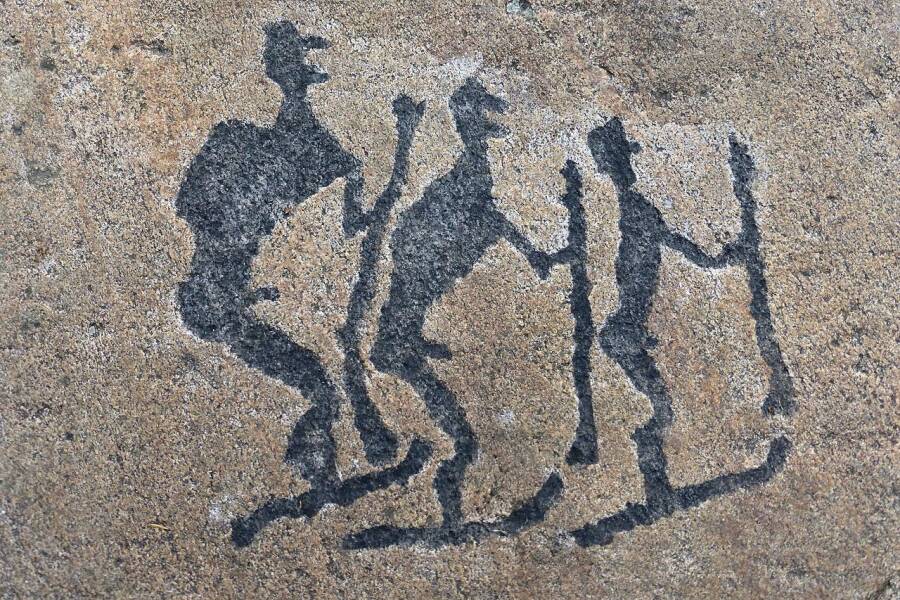Онежские петроглифы датируются IV—III тысячелетиями до нашей эры. Среди них часто встречаются изображения лебедей, зверей, человеческие фигуры и лодки. Попадаются и загадочные изображения. Одним из таких является “бес”.