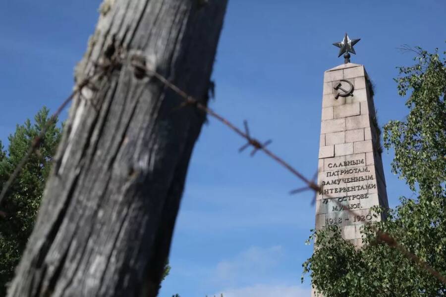 Дюнно-болотный остров на входе в Двинское устье в 40 километрах к северо-западу от Архангельска. Чистые пески, густые заросли молодой сосны, много горячего солнца и морского ветра. Сказочное место! Но именно сюда 12 августа 1918 года, спустя десять суток после захвата Архангельска интервентами, была, по данным исследователя В.Н. Васева, высажена первая партия из 24 заключенных.