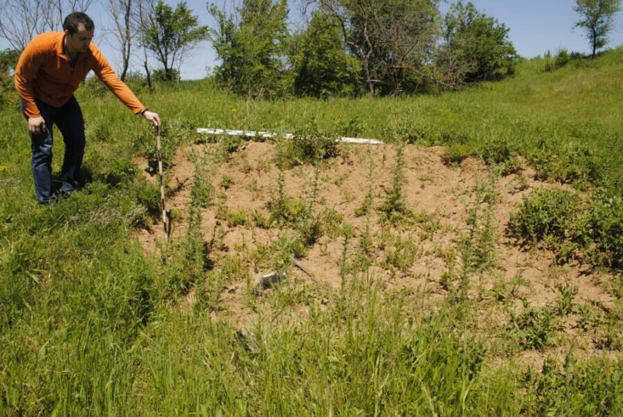 Внимание на необычный курган обратил местный житель. Он заметил торчащие из насыпи человеческие кости, которые стало видно после сошедшего оползня. Об увиденном он сообщил в полицию, а сотрудники правоохранительных органов вызвали на место археологов.