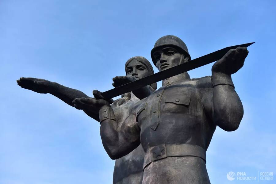 Монумент включает в себя скульптурную группу из гранита и бронзы и 30-метровый пилон. В центре — фигура Родины-матери и Советского воина. Рядом с монументом находятся захоронения нескольких тысяч бойцов, среди которых Герои Советского Союза: разведчик Николай Иванович Кузнецов и летчик Михаил Степанович Лиховид. На первом этапе будут демонтированы барельефы, затем начнут разбирать плиты памятника. Части монумента затем планируется передать в экспозицию музея “Территория Террора”, посвященному тоталитарным режимам.