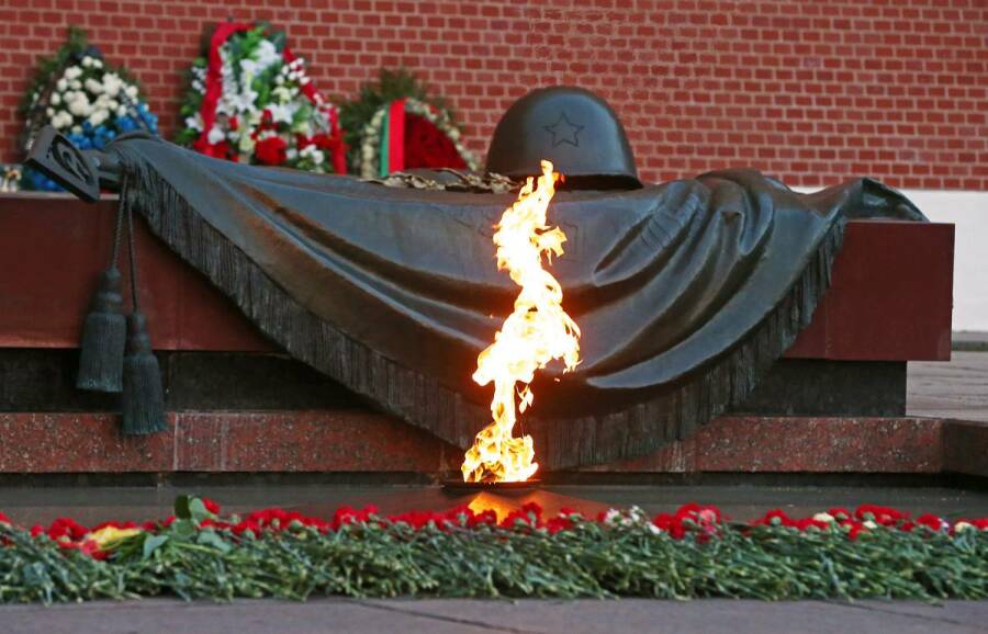 Церемония возложения цветов традиционно прошла в Александровском саду в Москве. Цветы возложили к Вечному огню, а также к каждой из стел на аллее городов-героев и городов воинской славы.