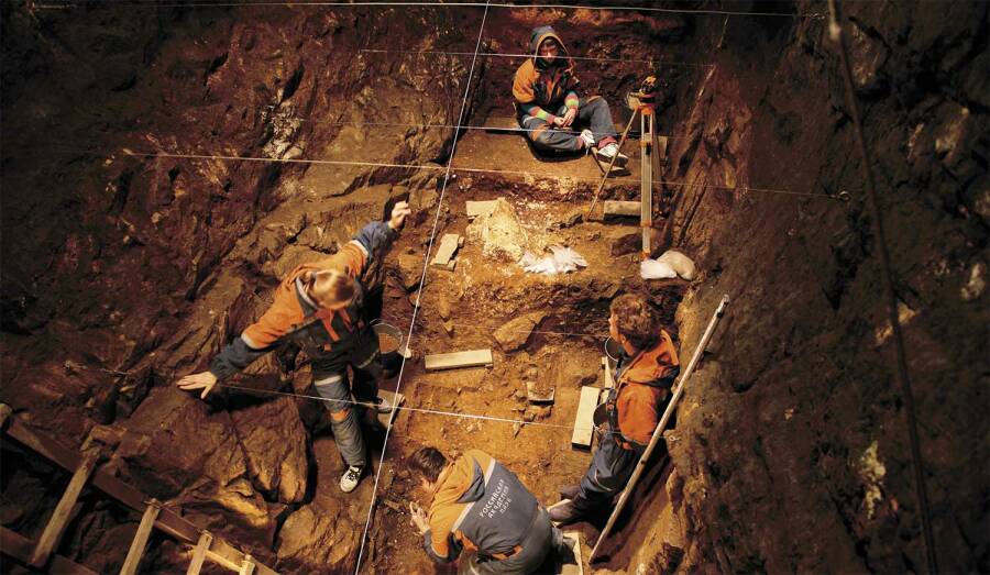 Согласно полученным данным, человек современного вида пришел в пещеру около 45 лет назад. До этого здесь обитали денисовские люди (300 тысяч лет назад), затем неандертальцы (130 тысяч лет назад). Удобная для укрытия пещера никогда не пустовала. По мнению ученых, представители Homo sapiens так или иначе взаимодействовал с обоими видами, населявшими пещеру.
