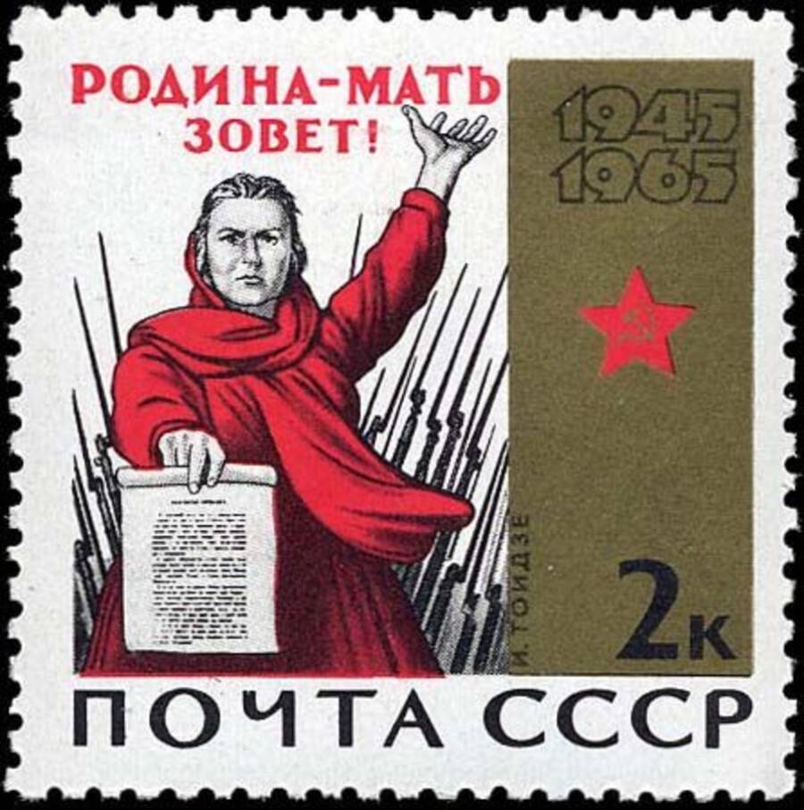 Отдельный интерес вызывает коллекция марок, выпущенных к 20-летнему юбилею Победы, передают «Калужские Губернские ведомости». На них воспроизведены картины знаменитых художников, писавших на военную тематику, а также плакаты периода войны. Самые знаковые из них – «Родина-мать зовет» и «Непобедимые».