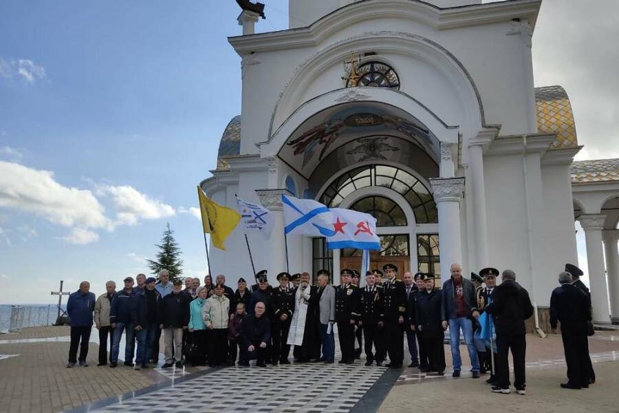 На церемонию открытия мемориала в Крым съехались представители ветеранских организаций ВМФ из разных городов России от Москвы до Севастополя. Моряки присутствовали на открытии в военной форме со своими флагами.