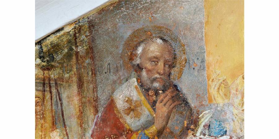 Прежде чем приступить к реставрации, ученые провели ряд исследований, во время которых были открыты дополнительные изображения, долгое время закрашенные. Среди них — композиция с пророком Елисеем и Николаем Чудотворцем (обе относятся к середине XIX века). Специалисты укрепили слой краски и штукатурки на изображениях, удалили пятна. Восстановление изображений — один из этапов масштабной реставрации храма. К настоящему времени удалось также укрепить кирпичные стены и кровлю, восстановить оригинальные двери и окна, а также обновить белокаменный цоколь и водосточную систему. Работы продолжаются: в скором времени реставраторы планируют приступить к отделке внутренних помещений храма.