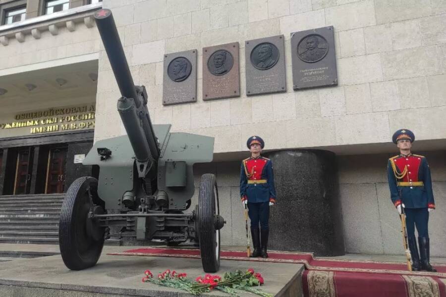 Сегодня в Москве на стене у парадного входа Военного учебно-научного центра Сухопутных войск «Общевойсковая академия Вооруженных Сил Российской Федерации» (ВУНЦ СВ ОВА) под звуки Государственного гимна России торжественно открыли мемориальную доску Маршалу Советского Союза Семену Михайловичу Будённому.