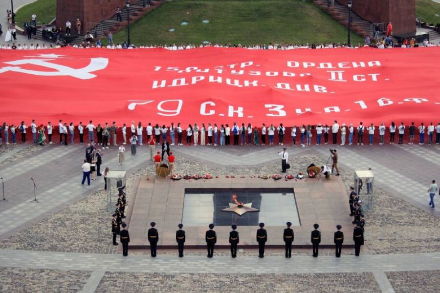 Вечером 21 июня самое большое Знамя Победы развернут в Брестской крепости, куда затем передадут на вечное хранение.
